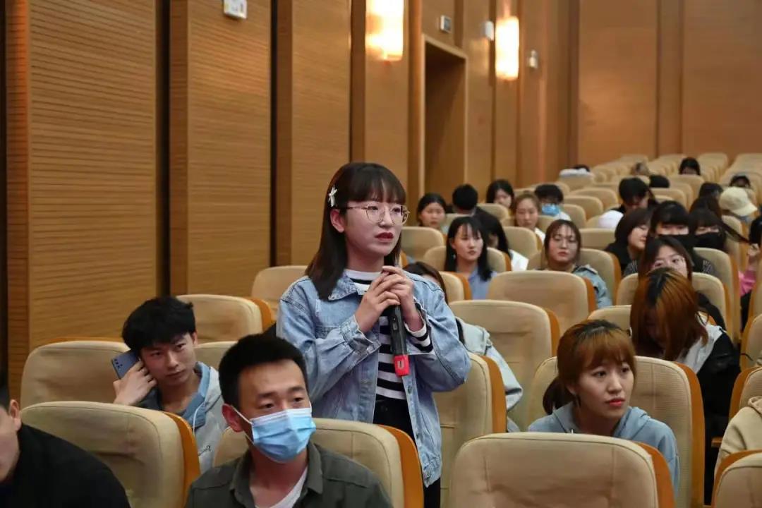 然后,我院2019届优秀毕业生代表鲁凤义以提问方式“职场新人,什么最重要”拉近与师弟师妹的距离,突出了上海宝冶的“大平台”对她人生道路的重要作用,并分享了入职两年来的成长见闻,提醒同学们提前做好个人的职业规划,并欢迎本院学生去公司交流。