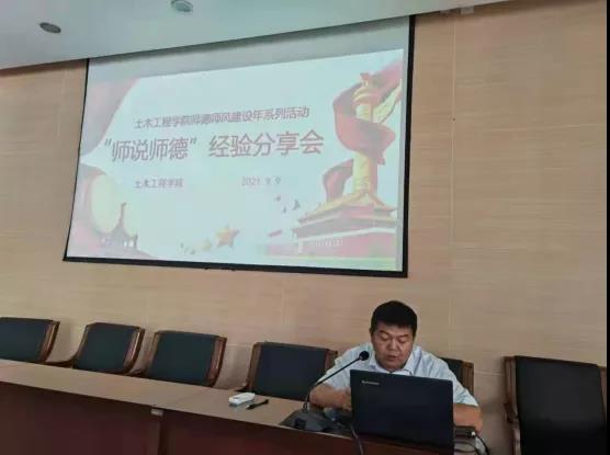 为进一步加强师风师德建设,打造一支师德高尚、专业突出、充满活力的高素质教师队伍,迎接第37个教师节,9月9日14:30,太阳成集团tyc151cc于逸夫楼B404组织召开了“师说师德”经验分享会,会议由王英浩老师主持。