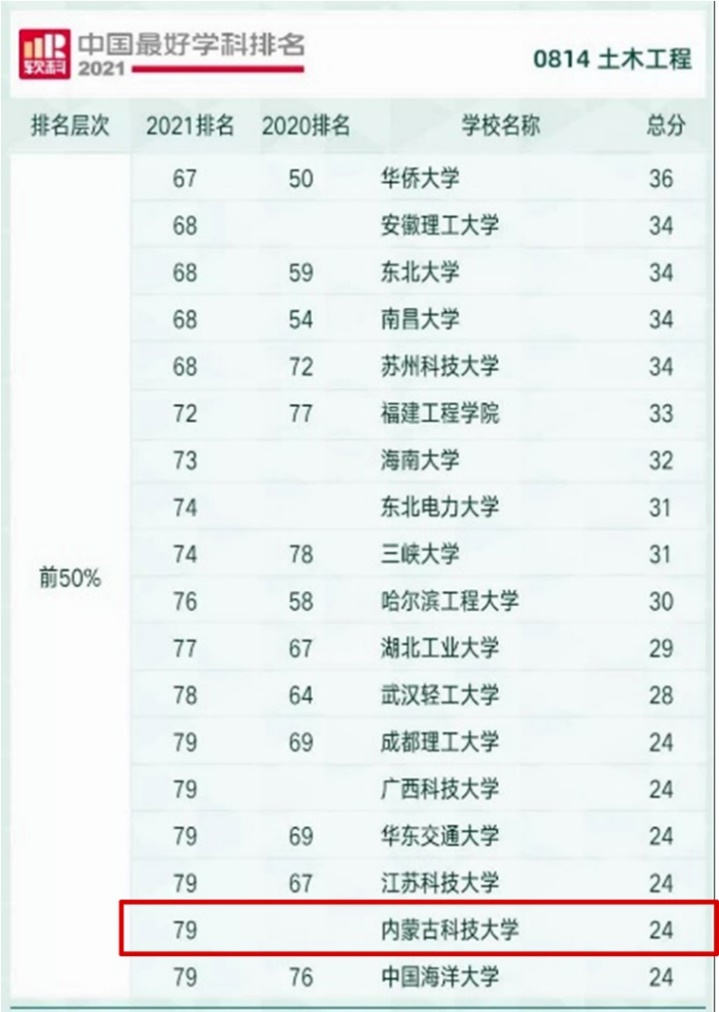 10月25日,“2021软科中国最好学科排名”正式发布,太阳成集团tyc151cc土木工程学科进入全国学科前50%,位列全国79名。