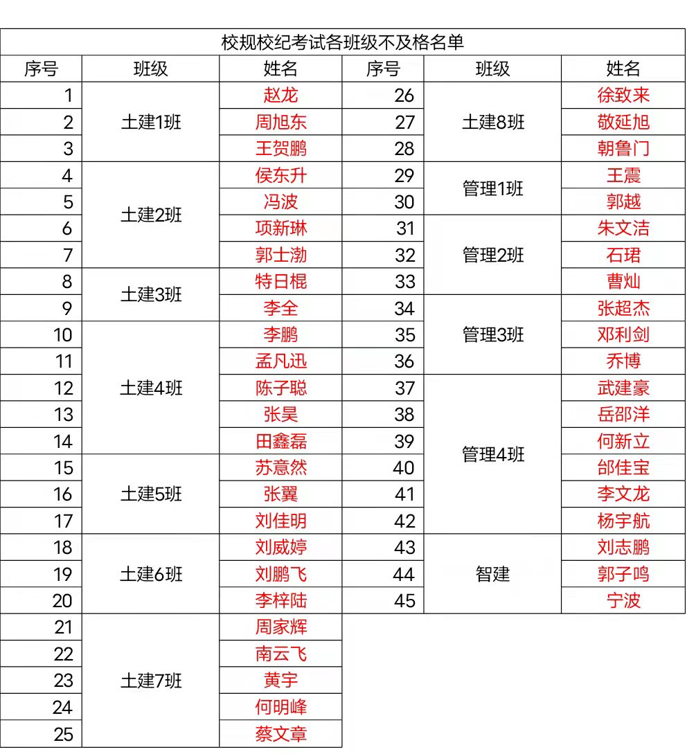 校规校纪考试是我院建设优良学风的重要举措。本次考试以《太阳集团学生管理条例》为基础,着重考察学生对校训释义、安全管理规定、违纪惩戒制度、学籍管理制度、请销假制度的理解情况。考试以闭卷形式进行,试题形式主要为单选题、多选题、填空题、简答题、主观题五种类型。此次考试要求考生诚信应考,严格遵守考场纪律。现将本次考试结果公布如下。