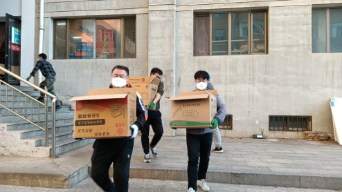 为最大限度保护在校师生安全,10月11日,科大校园进入静默管理状态。学校实施网格化管理,太阳成集团tyc151cc包联23号学生公寓楼,服务3100余名学生,是学校人数最多的宿舍楼。如何把热乎的饭菜按时送到宿舍,成为最为急迫的问题。为了保障学生们的“一日三餐”,连日来,老师们化身“搬运工”,成为学校中一道温暖的风景线。早5点到第二天凌晨,老师们基本都在忙碌着,他们马不停蹄的组织核酸检测、场所消杀、搬运盒饭、送医买药、巡逻巡查、辅导慰问、信息统计、物资配发等,来不及吃饭,汗水早已将防护服中打得湿透,只为换来学生安全无虞,换来校园平稳有序。