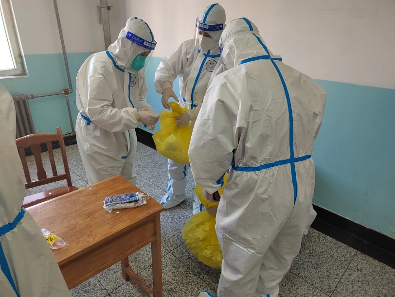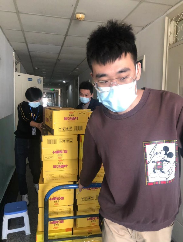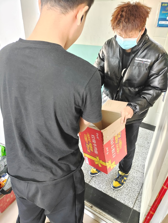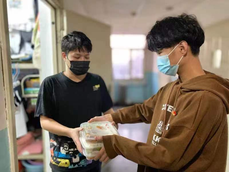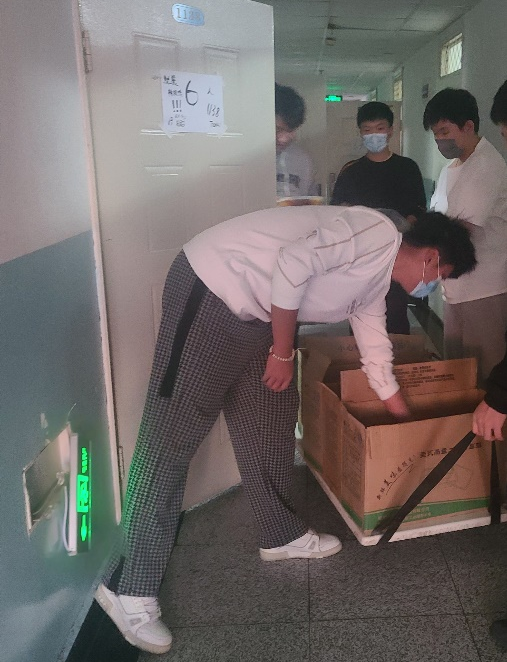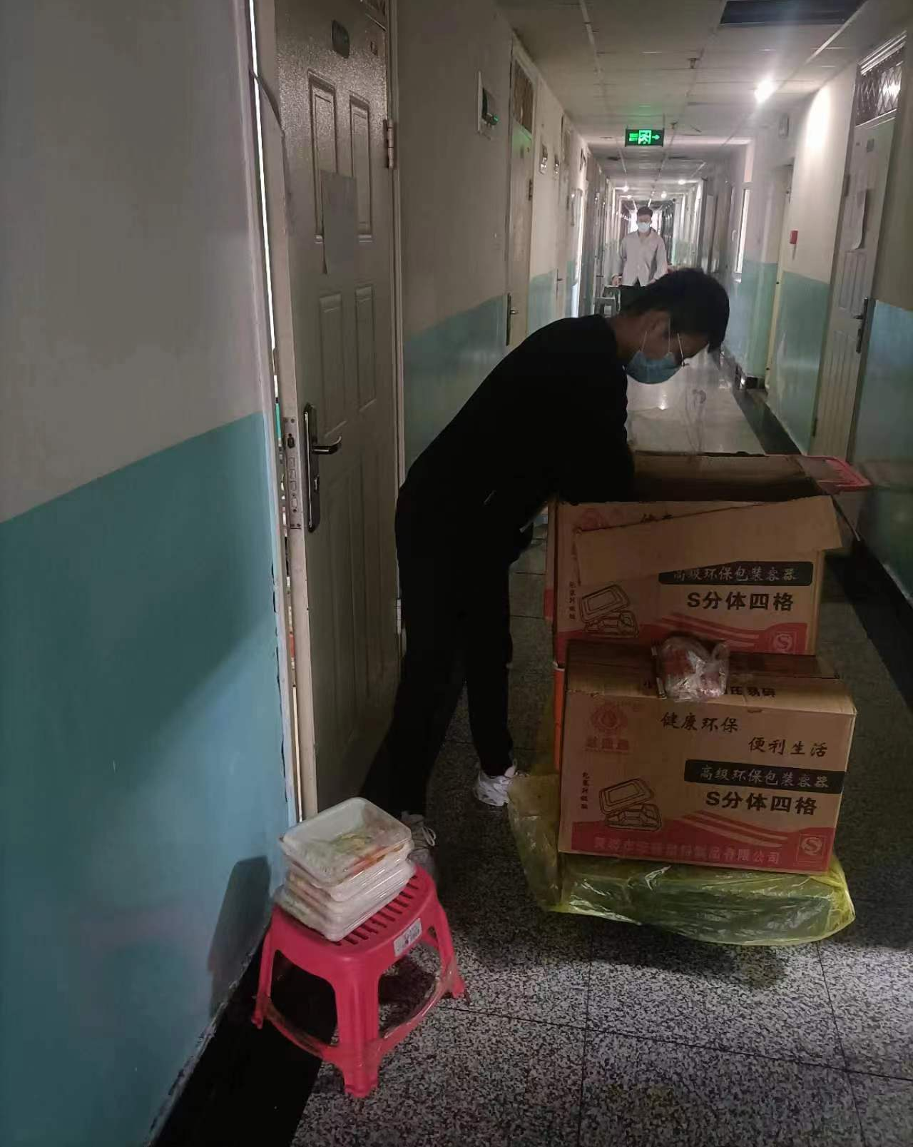 五楼楼层学生负责人:由经济管理学院史纪龙同志担任,作为学生楼层负责人每天早上配合老师组织本楼层的学生做核酸,配合老师负责组织派发学生们的一日三餐,包括取餐派餐等工作。每天进行志愿者值班工作,更好地服务和管理同学,配合老师解决学生们日常生活中的一些问题,包括药物购买,厕所问题,饮水问题等。