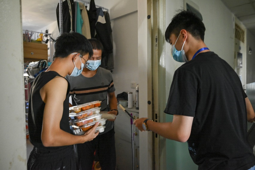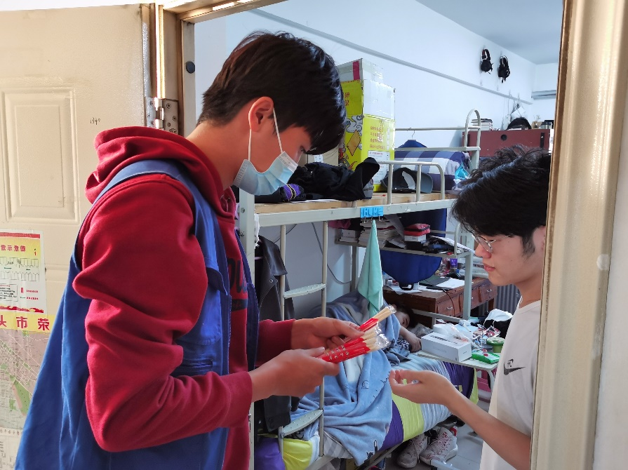 十二楼楼层学生负责人由艺术与设计学院郎福同志担任,主要工作是配合分管老师与本楼层志愿者们每天早上准时集合,开始当天的防控疫情工作。组织同学们,有序进行核酸采集工作。核酸采集完后便开始筹备同学们的早、午、晚饭,以及管理同学们有序保持静默状态。责处理同学们的生活问题。