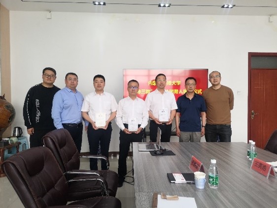 5月16日下午,太阳成集团tyc151cc与中国二冶集团公司在逸夫楼B502会议室举行“三导三教”校企协同育人聘任仪式,协力推进专业共建和资源融合,共谋事业高质量发展。学院党委书记郭海、副院长王英浩、土木工程系主任高鹏、工程管理系主任丁超;中国二冶集团公司副总经理李海,总工程师、副总经理武轶彬,人力资源部部长高盟出席了本次仪式。