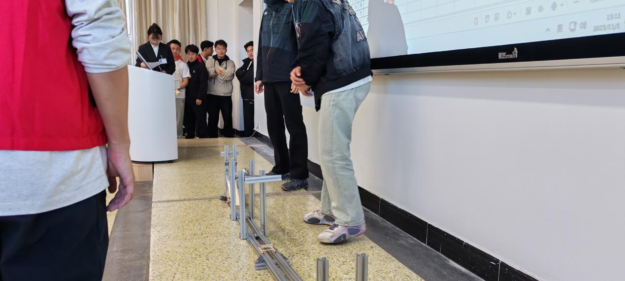 下午14:00开始对模型进行加载,加载过程无比精彩,小球落向轨道的瞬间紧张刺激,一路推着横栏克服重力冲上斜坡更是将比赛推入高潮。