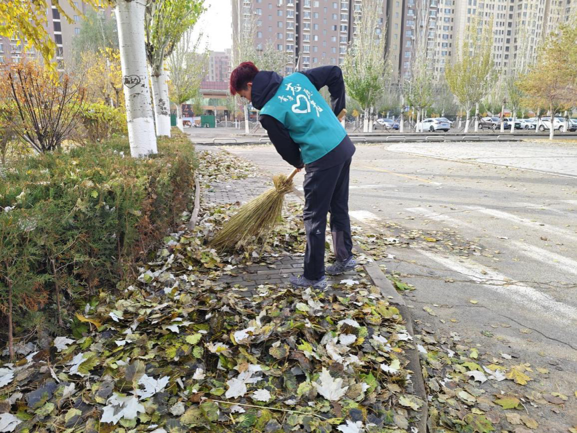 大家手持扫帚,默契配合,将散落各处的落叶一一归拢。尽管落叶量大,但同学们热情不减,忙碌的身影成为秋日校园里一道温暖的风景。