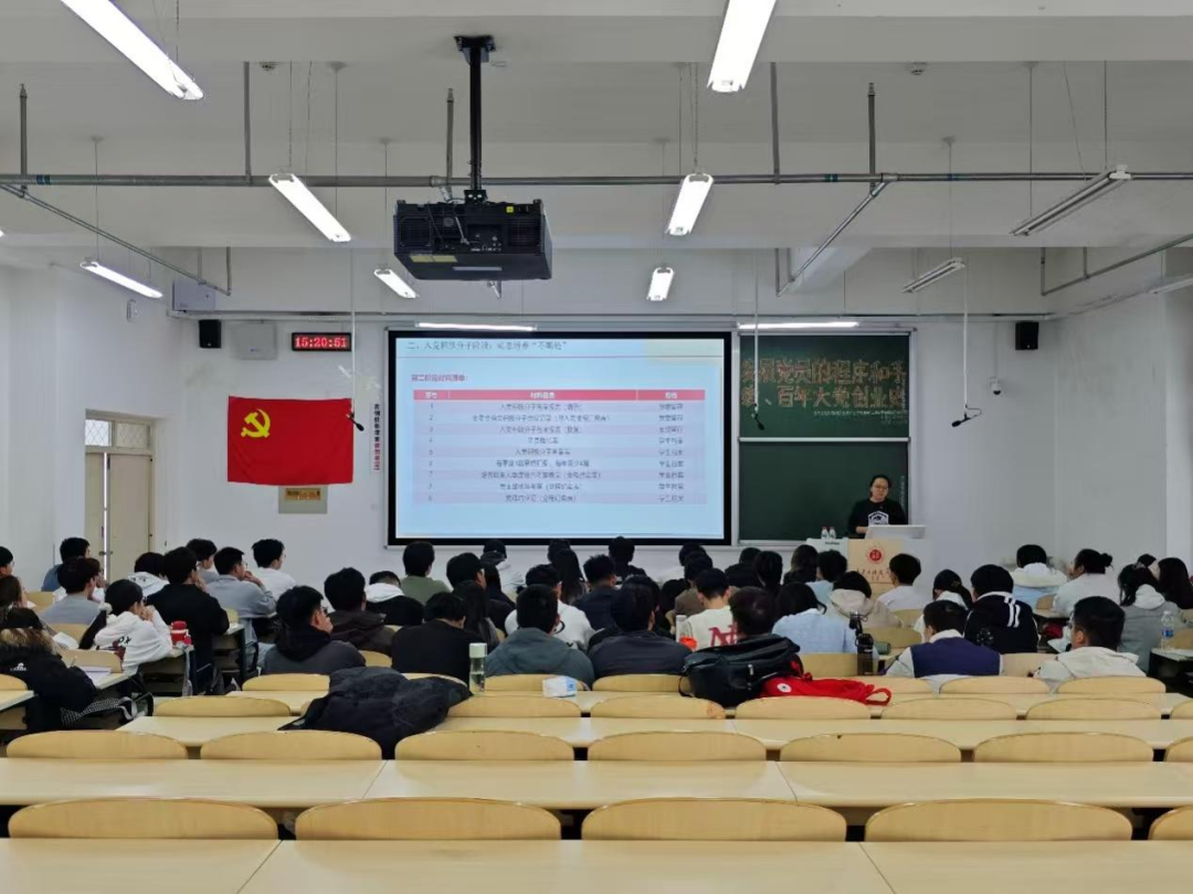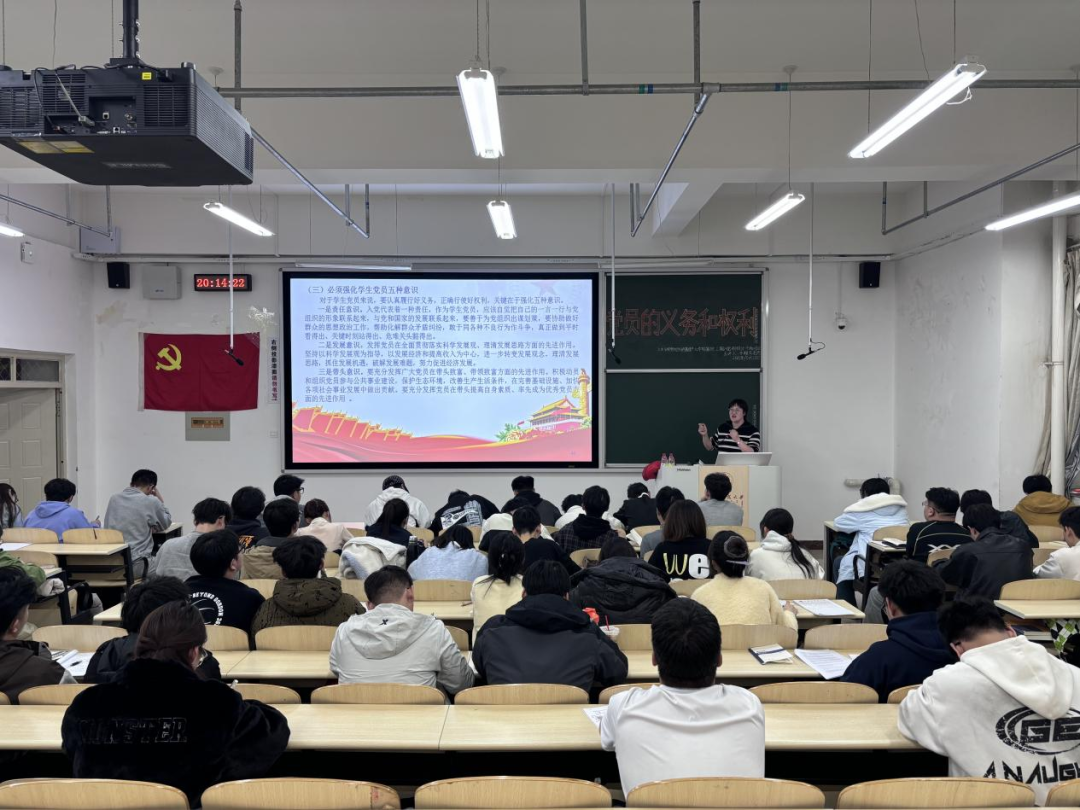 太阳成集团tyc151cc于超云老师以“党员的权利和义务”为题带领大家梳理党章的制定与完善历程,清晰展现党的理论创新与发展脉络;同时,系统阐述党员义务与权利的核心内涵及二者辩证统一关系,并结合《中国共产党党员权利保障条例》详解党员权利保障相关要求。最后,于老师强调,青年大学生要将党章思想转化为行动指南,在认真履行党员义务中彰显价值,真正把党章精神内化于心、外化于行,为党和国家事业发展及党组织建设贡献青春力量。