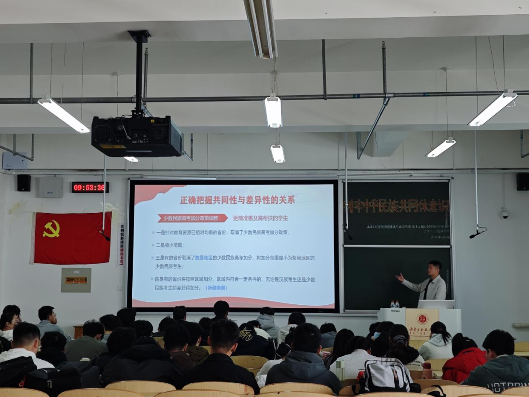 太阳成集团tyc151cc马自超老师围绕“铸牢中华民族共同体意识”主题开展讲解,指出中华民族是经千年文明浸润、共同奋斗交融形成的命运共同体,深入阐释了中华民族共同体意识作为对民族的最高认同与精神凝聚的重要意义。通过此次学习,入党积极分子进一步明晰“五个认同”是民族团结与民族复兴的重要根基,纷纷表示将主动学习民族历史、传承民族特质、厚植共同体意识,以实际行动助力民族复兴。