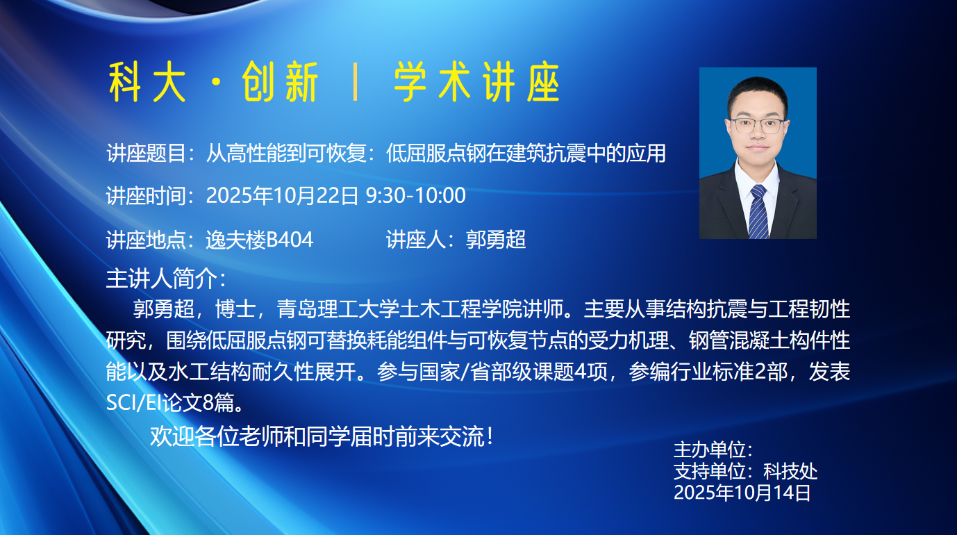 讲座题目:从高性能到可恢复:低屈服点钢在建筑抗震中的应用
