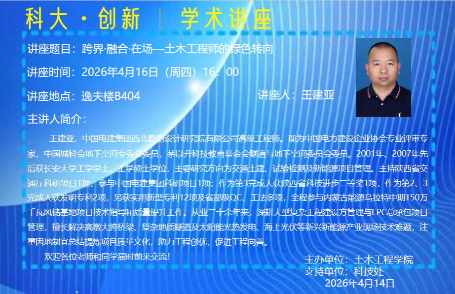 讲座题目:跨界·融合·在场土木工程师的绿色转向