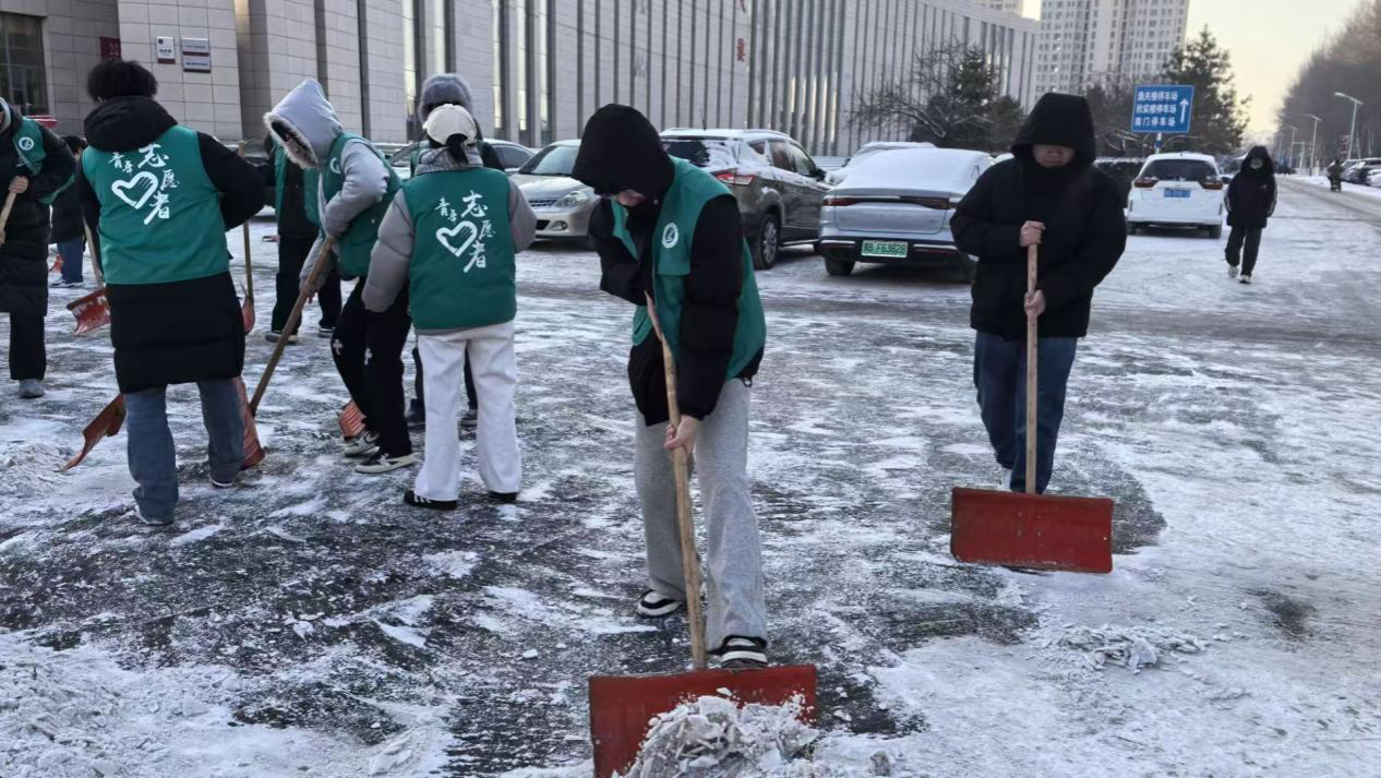 寒冬已至,雪花装点校园,银装素裹虽美,却也给师生出行带来诸多不便。为保障师生安全,我院团委和青年志愿者协会迅速响应,开展了“破冰除雪暖校园”志愿服务活动。